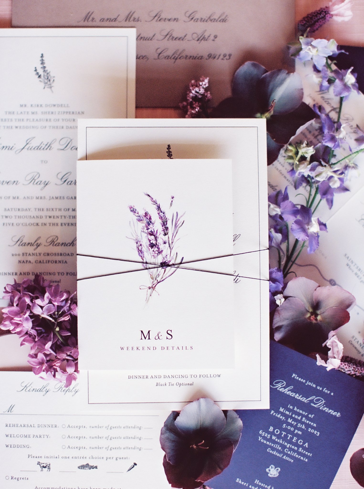 A Lake Tahoe wedding weekend at Martis Camp — where a couture Oscar de la Renta gown inspired the stationery suite and every paper detail told a family’s story.
